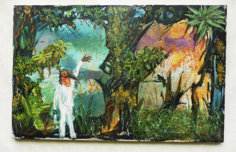 Der kosmische Hausmeister oder vielleicht Rod Stewart ? 2011 Öl auf Kunststoff 59,5 x 52,5 cm